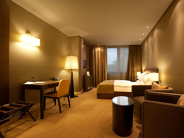 Prostrane i elegantne delux sobe s modernim i ugodnim namještajem idealne su za poslovne ljude i turiste. U sastavu je svake sobe vrhunski opremljena kupaonica, s kamenim umivaonicima te kadama i tuš-kabinama. Sobe su dostupne s bračnim krevetom ili s dva odvojena twin kreveta.